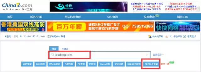 在搜索框输入“你的竞争对手的网址 ”点击“SEO综合查询”,就可以看到你的竞争对手网站的关键词是哪些了。
