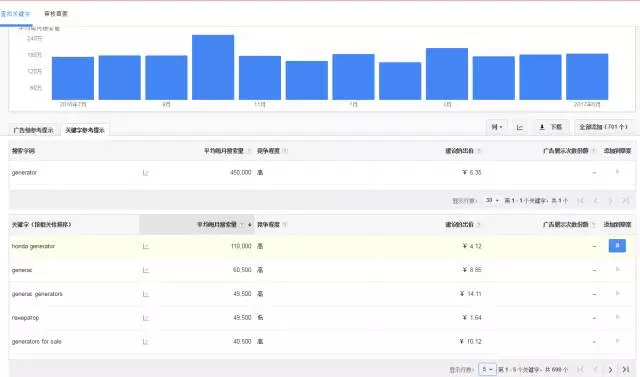 以Generator(发电机)为例,月度关键词搜索量平均在150万左右,相关关键词690个。注意,这690个关键词都是在谷歌搜索引擎上有搜索量的关键词,并不是有些SEO优化自己创建的无效关键词。具有研究价值。
